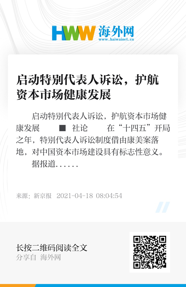 “十四五”规划纲要明确提出,要完善投资者保护制度。因此,在“十四五”开局之年,旨在最大限度保护投资者利益的特别代表人诉讼制度,借由康美案落地,无疑具有标志性意义。这不仅是加强资本市场基础制度建设的重要成果,也是我国民事诉讼制度的重要创新。而随着包括司法制度在内的监管体系不断完善,未来,那些试图步康美后尘的“劣币”们将无处遁形,这也为建立一个规范、透明、开放的A股市场打下坚实底座。