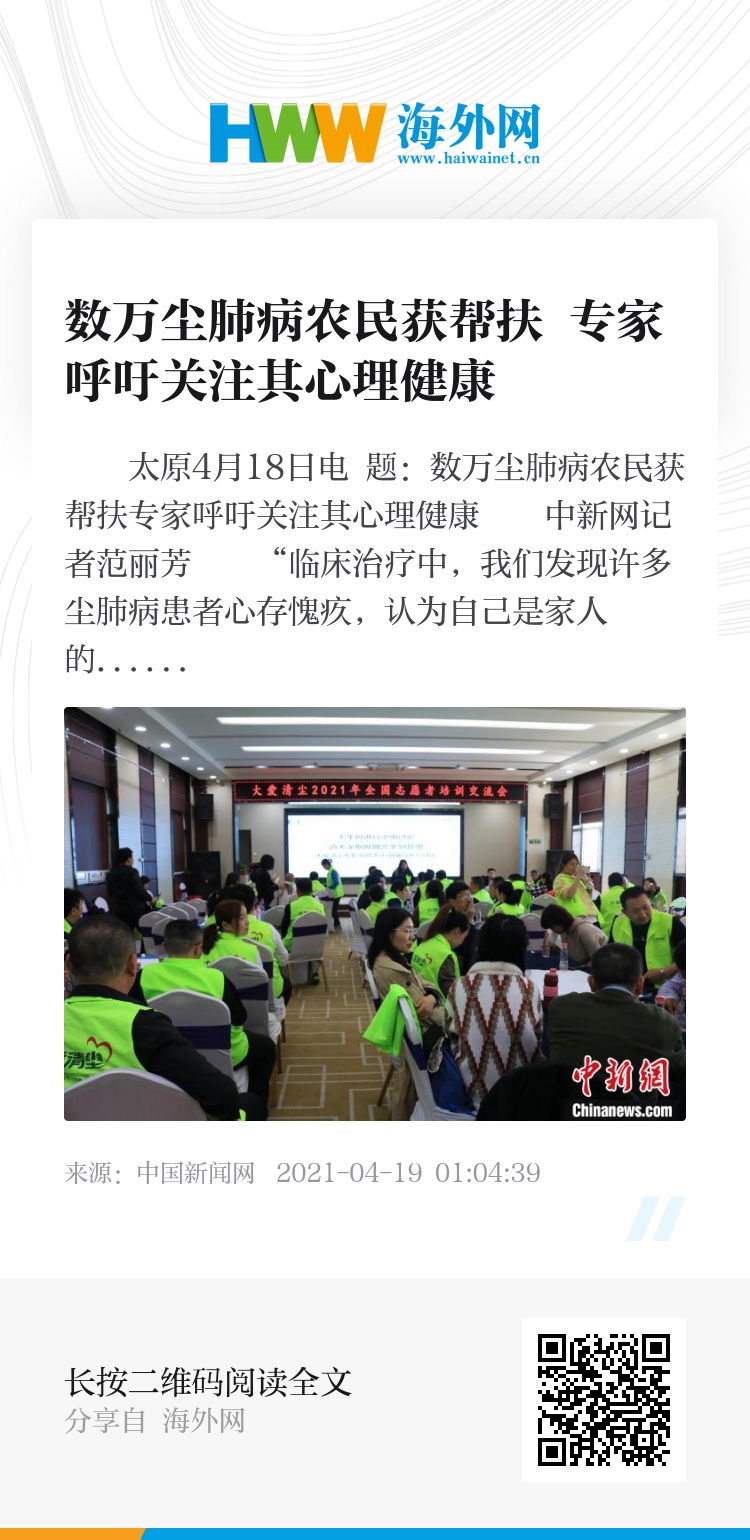 中新网太原4月18日电 题:数万尘肺病农民获帮扶专家呼吁关注其心理健康