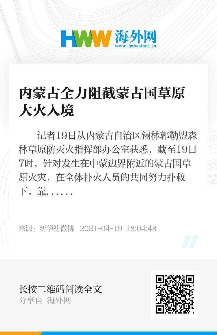 记者19日从内蒙古自治区锡林郭勒盟森林草原防灭火指挥部办公室获悉,截至19日7时,针对发生在中蒙边界附近的蒙古国草原火灾,在全体扑火人员的共同努力扑救下,靠近中方边境一线明火全部堵截在边境巡逻道和防火隔离带以北。目前,中方扑救人员仍在严守观察。(记者于嘉、任军川)