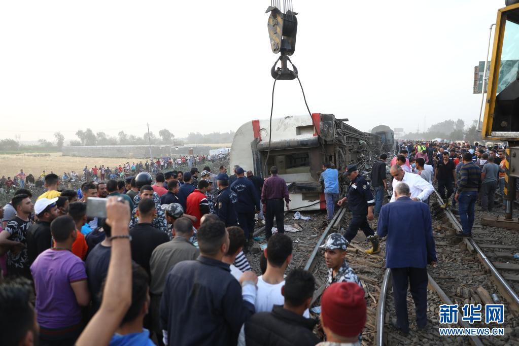 图为4月18日,在埃及图赫市,人们聚集在列车脱轨事故现场。新华社发(艾哈迈德·戈马摄)