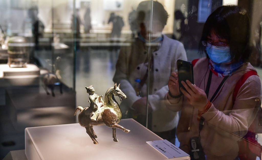 近日,“河洛遗珍—洛阳都市圈文物联展”在洛阳市博物馆开幕,吸引众多市民、游客欣赏各地文物魅力。本次展览精选了来自洛阳博物馆、平顶山博物馆、焦作市博物馆、三门峡市博物馆、三门峡市虢国博物馆、南阳市博物馆、济源市博物馆、巩义市博物馆等7个城市8家博物馆的160件(组)文物精品,通过“地域蹁跹 山水共舞”“文脉锦绣 华柯星耀”“诗与远方 谱绘华章”三大篇章,溯古及今,以河洛文化为纽带,串联洛阳都市圈各地丰厚历史遗产,为市民和游客搭建了一个了解洛阳都市圈的历史文脉平台。展览将持续到7月21日,市民、游客可免费预约参观。图为月18日,游客在河南洛阳市博物馆“河洛遗珍—洛阳都市圈文物联展”上,参观“汉代复釉陶骑士俑”等文物。图片来源:视觉中国