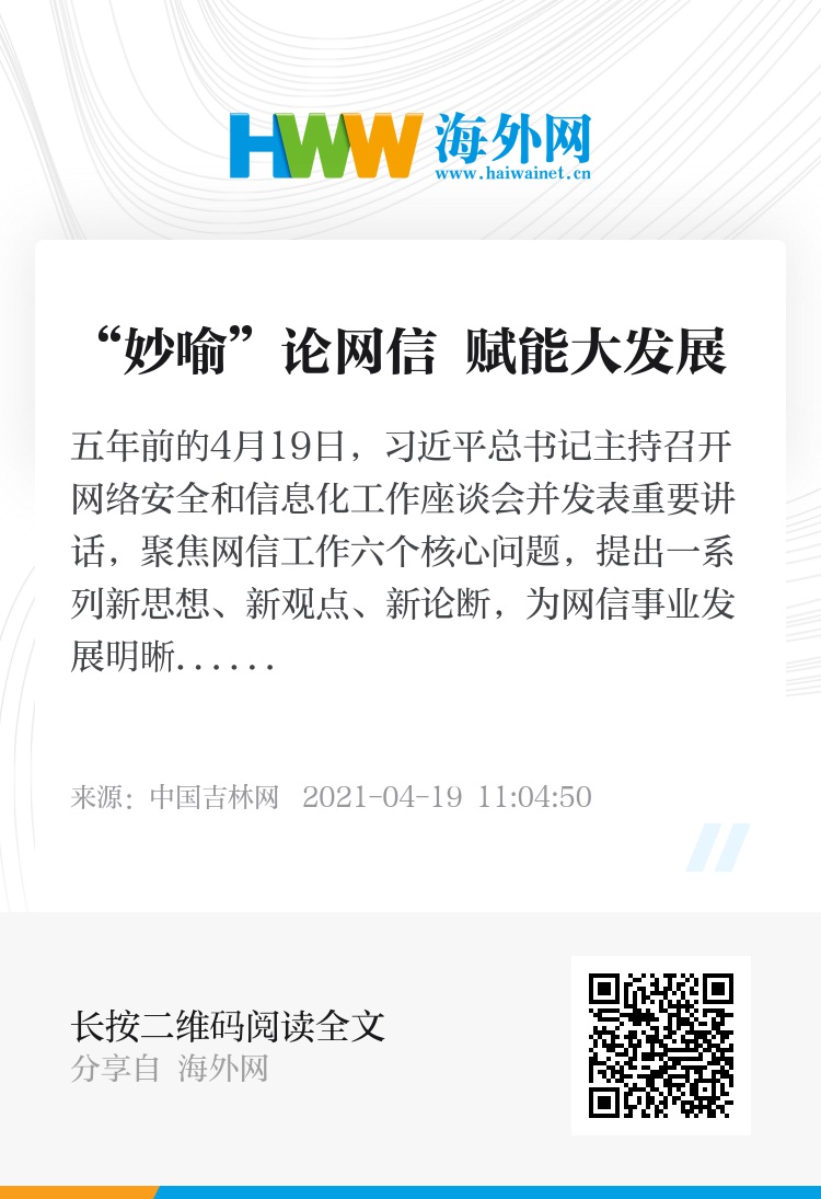 五年前的4月19日,习近平总书记主持召开网络安全和信息化工作座谈会并发表重要讲话,聚焦网信工作六个核心问题,提出一系列新思想、新观点、新论断,为网信事业发展明晰方向,开启了网信工作务实作为、创新发展的新历程。习近平总书记在此次讲话中多次运用生动形象的比喻阐明网信事业中核心技术、互联网领域人才、互联网企业发展等方面的问题。一个比喻打开一个生动的世界,一个妙喻赋能发展鲜活的力量。五年来,中国网信事业大发展,谱写传奇。