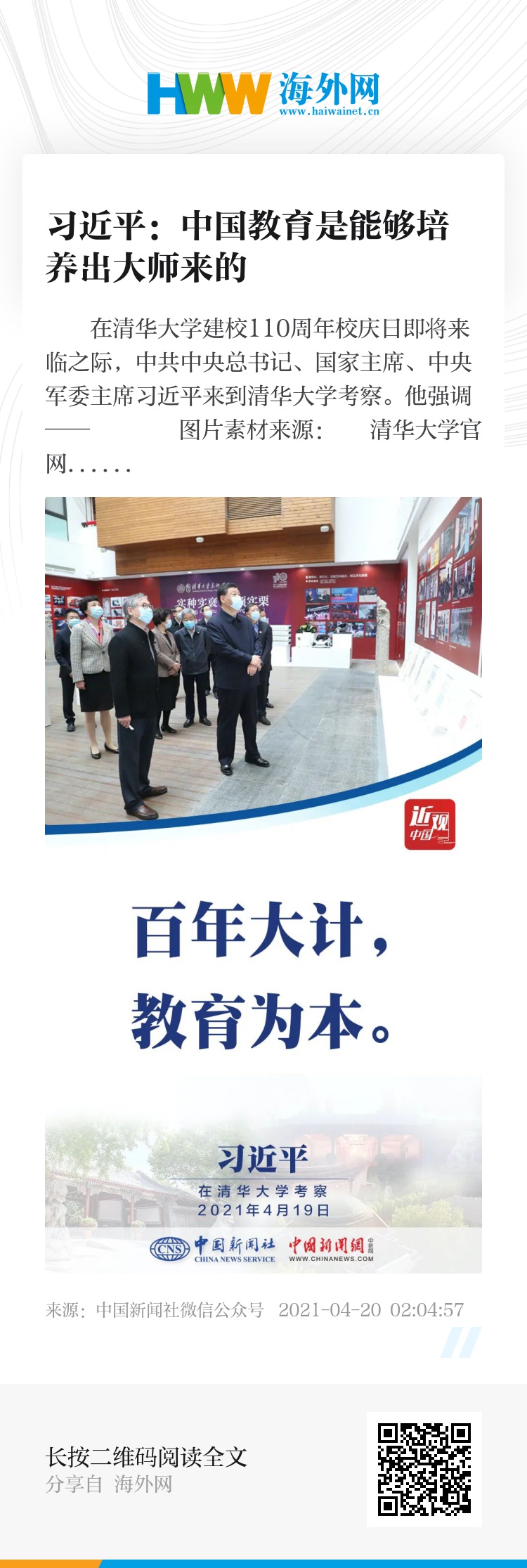 在清华大学建校110周年校庆日即将来临之际,中共中央总书记、国家主席、中央军委主席习近平来到清华大学考察。他强调——