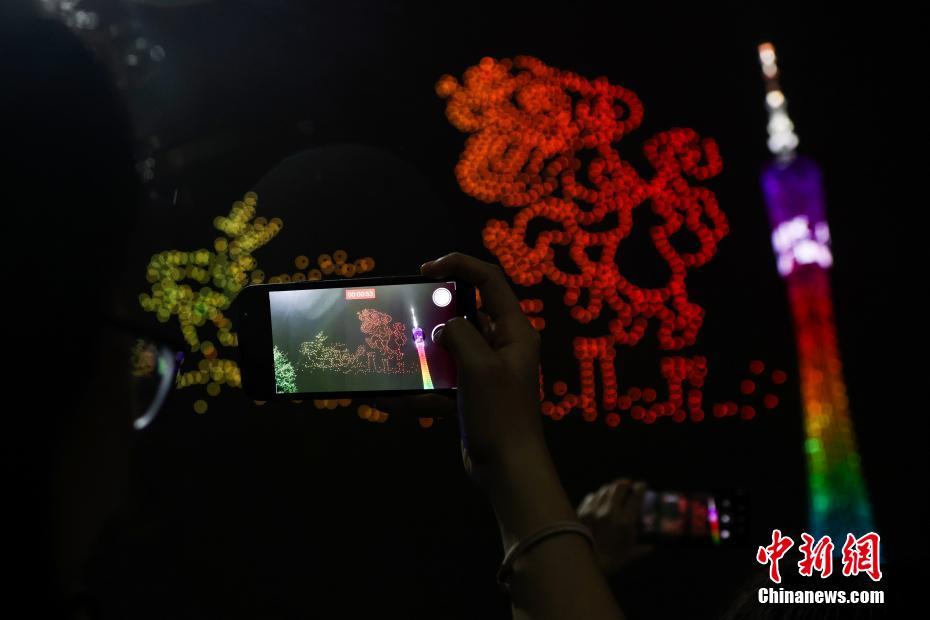 无人机灯光秀点亮广州上空 描绘“大湾区 大未来”