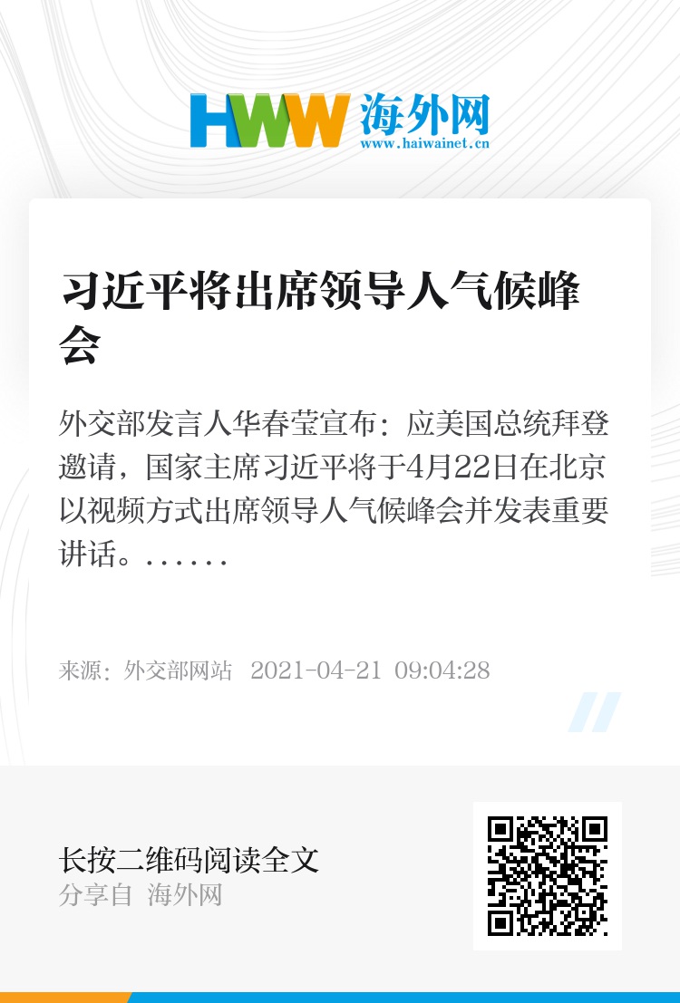 应美国总统拜登邀请,国家主席习近平将于4月22日在北京以