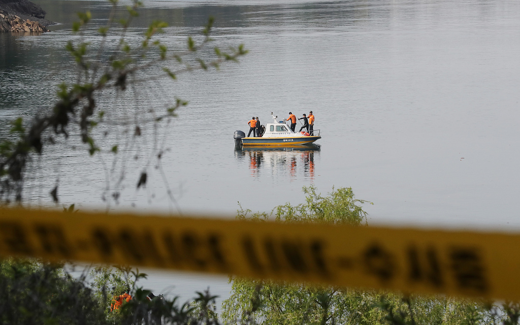 ​当地时间4月21日,韩国忠清北道清州市一架消防直升机在扑灭山火的过程中坠湖,消防部门工作人员在进行搜寻工作。图片来源:人民视觉