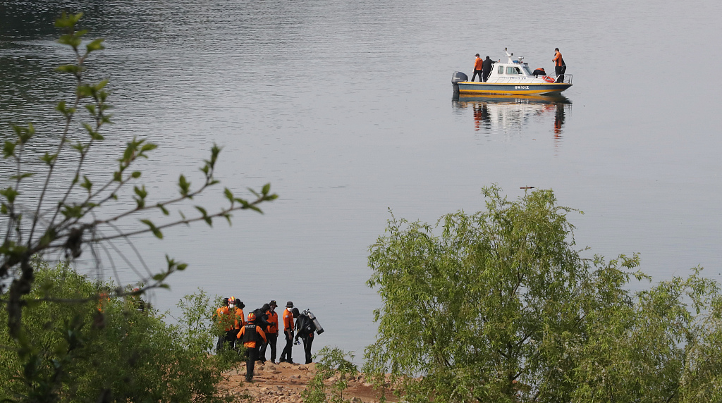 ​当地时间4月21日,韩国忠清北道清州市一架消防直升机在扑灭山火的过程中坠湖,消防部门工作人员在进行搜寻工作。图片来源:人民视觉