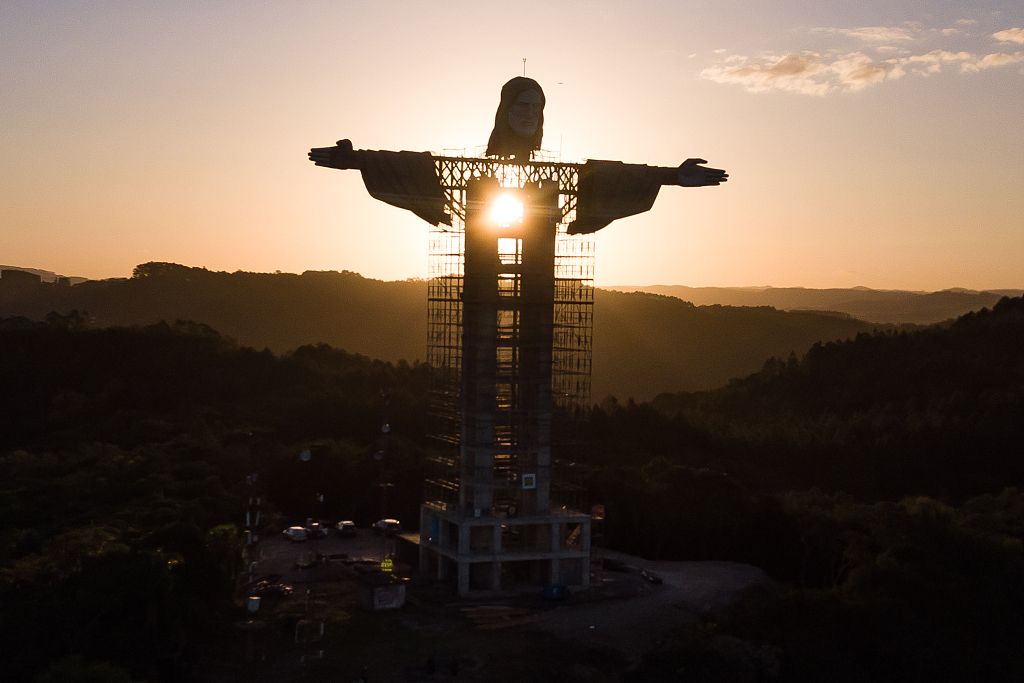 当地时4月20日,巴西南里奥格兰德洲恩坎塔多,一座新的基督雕像正在建造中。建成后的雕像将比里约热内卢的基督救世主雕像更大,它将成为世界上第三高的耶稣雕像。剩余部分计划于今年年底完成。图片来源:视觉中国