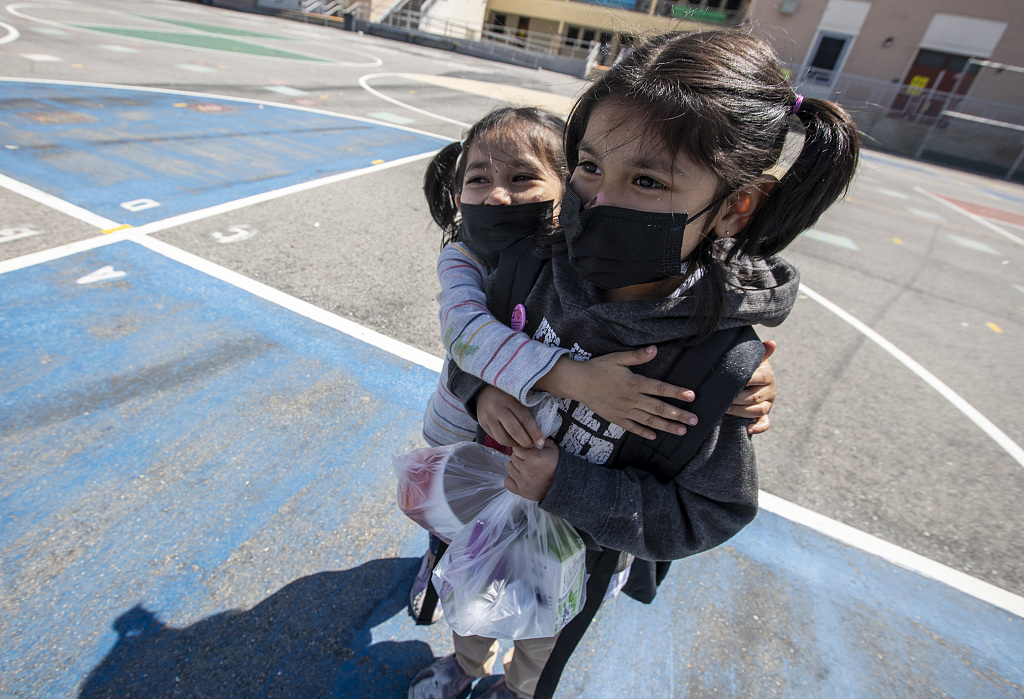 美国加州幼儿园重新开学 小朋友佩戴口罩重返课堂
