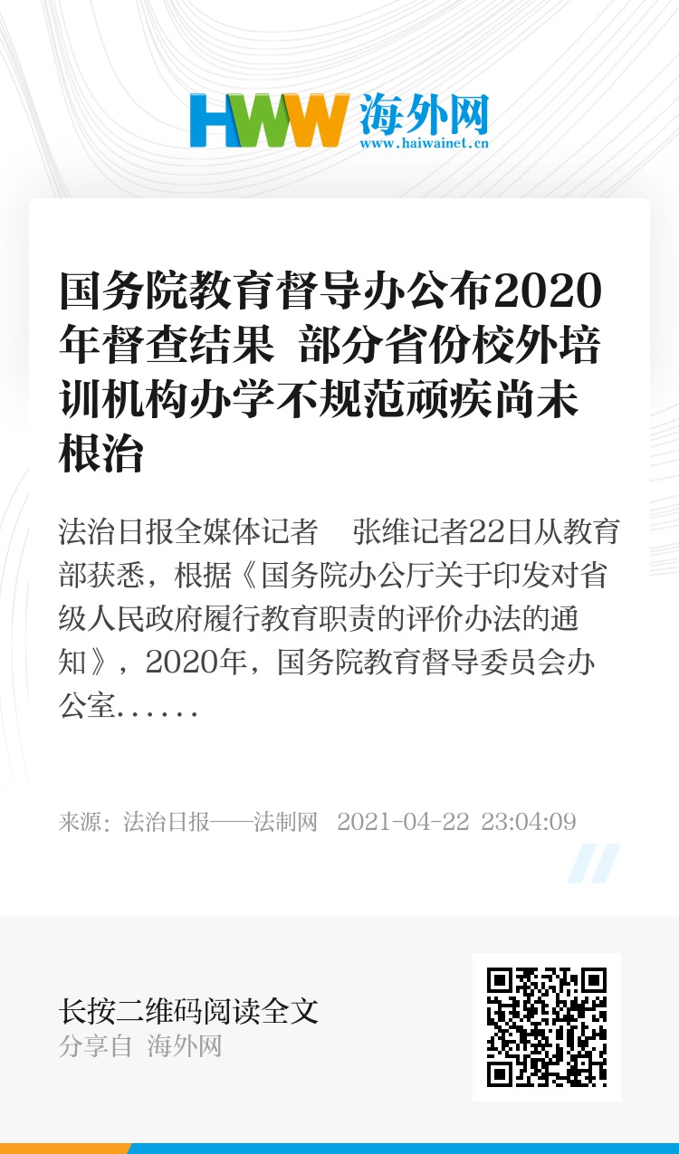 据了解,督查共确定党的建设、教育经费投入、中小学教师平均工资收入、城镇小区配套幼儿园治理、校外培训机构治理、高校毕业生就业等12项重点督查事项,事先系统梳理各渠道反映的问题,逐省列出问题线索清单,采取“四不两直”方式,注重多方了解情况,广泛听取一线师生和群众意见。实地督查持续约两周,共深入34个市(州)、73个县(市、区)、373所各级各类学校、83个校外培训机构,访谈家长、学生、干部及群众889人。