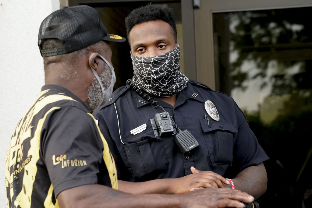 当地时间2021年4月21日,美国北卡罗来纳州伊丽莎白市发生一起警方暴力执法致死事件。受害者名叫安德鲁·布朗,今年40岁。事发当时,伊丽莎白市警方正在布朗家进行搜查,布朗突然跑向自己的车中试图逃跑,警方立即开枪将其当场击毙。据受害者家人表示,当时布朗并未携带任何枪支,也未对任何人构成人身威胁。图源:澎湃影像