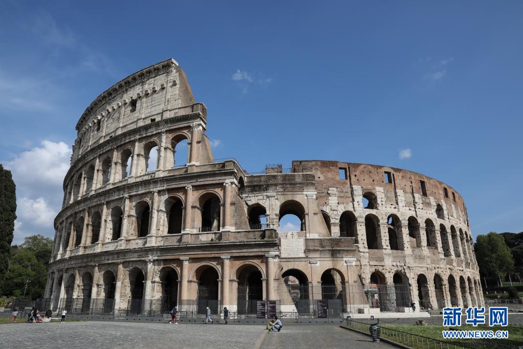 图为4月21日,人们在意大利首都罗马的斗兽场外休闲。新华社记者 程婷婷 摄