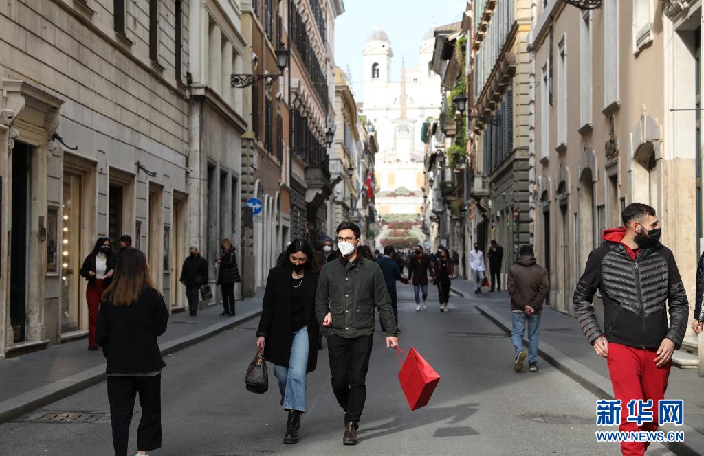 意大利总理德拉吉的内阁21日公布了一项具体路线图,准备从4月26日起放松新冠疫情管控措施。图为4月21日,人们在意大利首都罗马逛街购物。新华社记者 程婷婷 摄 ​