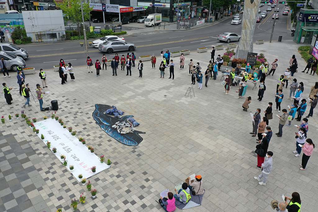 图为当地时间4月22日,韩国光州举行纪念地球日活动。