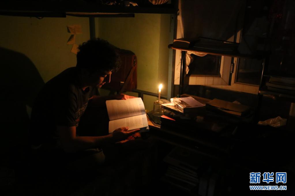 这是2019年9月17日,在阿富汗首都喀布尔,一名学生在宿舍里点起蜡烛看书。   新华社发(赛义德·莫明扎达摄)