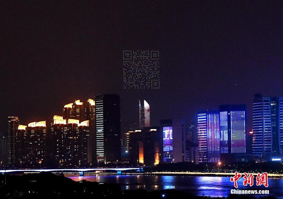 4月24日晚,福建福州,1500架无人机在闽江上空上演了一场高空光影秀,迎接第四届数字中国建设峰会。中新社记者 吕明 摄