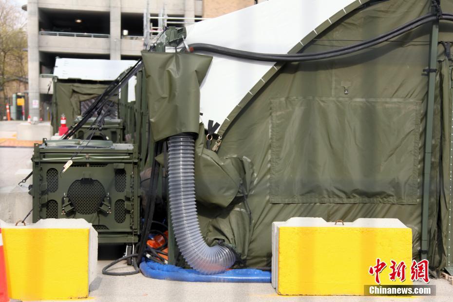 当地时间4月23日,加拿大多伦多,一间大型综合医院将其停车场改造成可容纳约100张床位的方舱医院,并计划在月底前收治新冠肺炎患者。加拿大今春遭遇疫情严重反弹,包括多伦多在内的多地医疗系统已难堪重负,各地不得不出台新的或升级已有的防疫封锁措施。 中新社记者 余瑞冬 摄