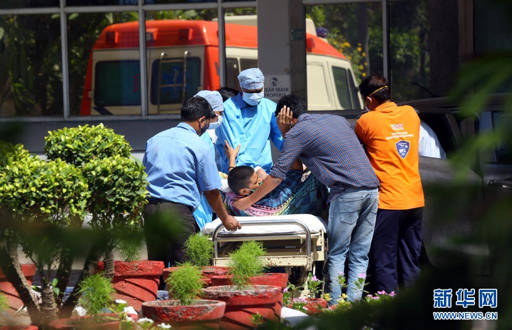 4月24日,人们将新冠患者送入印度新德里一家医院。印度24日报告新增新冠确诊病例超34万例,累计确诊病例超过1600万。这是印度连续第三天单日新增确诊病例超过30万例。新华社发