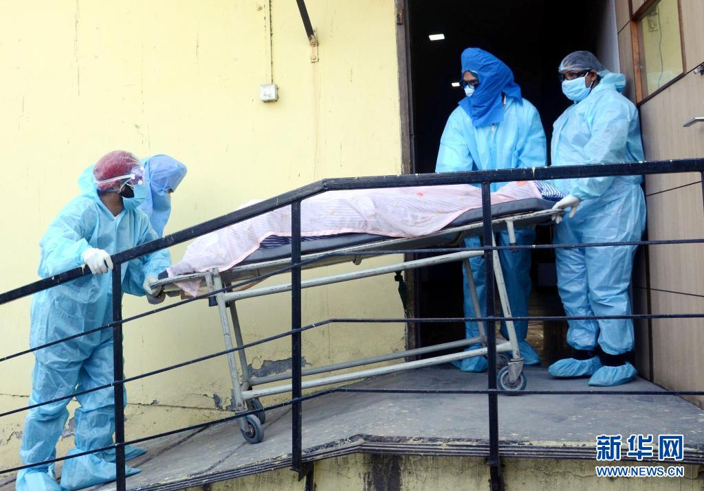 4月24日,印度阿姆利则的医务人员转移因感染新冠去世病患的遗体。印度24日报告新增新冠确诊病例超34万例,累计确诊病例超过1600万。这是印度连续第三天单日新增确诊病例超过30万例。