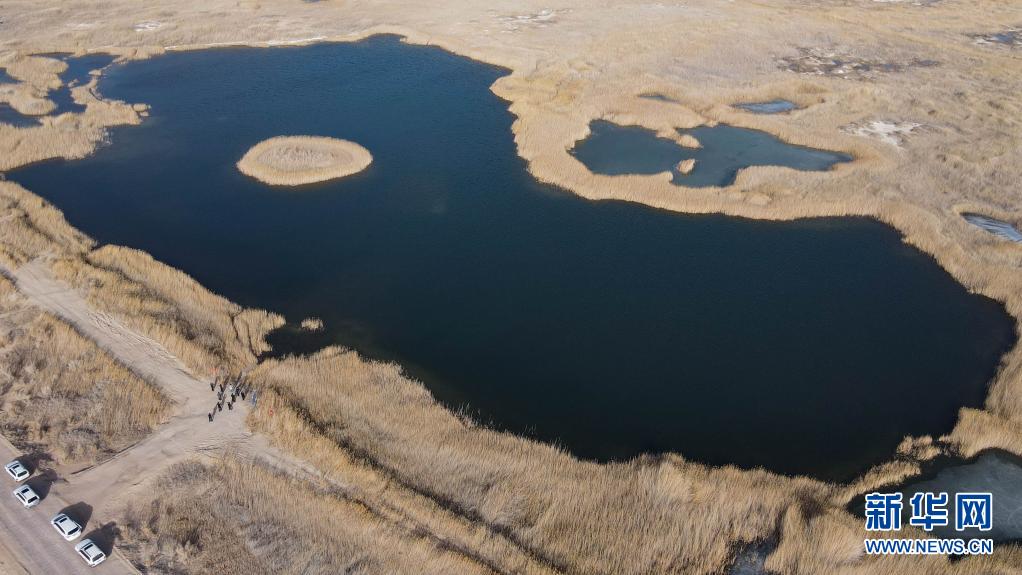 这是甘肃省民勤县青土湖景色(2021年3月2日摄,无人机照片)。新华社记者 郎兵兵 摄