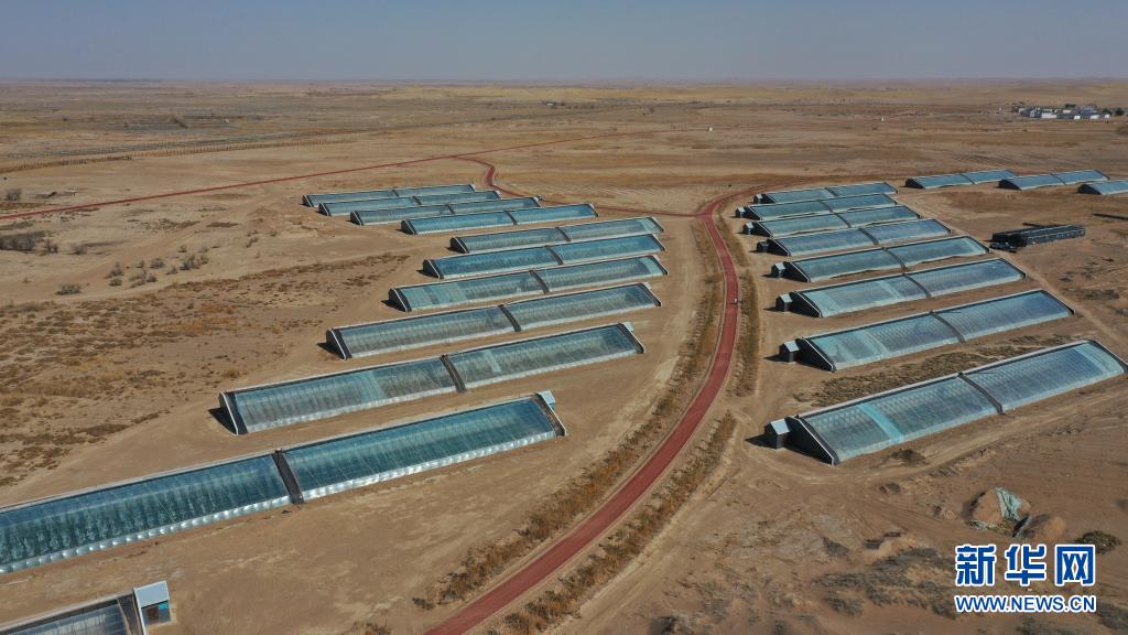 这是甘肃省民勤县沙漠腹地一处现代农业产业园(2021年3月4日摄,无人机照片)。新华社记者 郎兵兵 摄