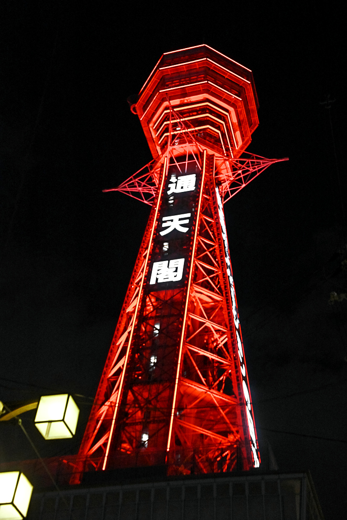 日本大阪进入紧急状态 地标通天阁点亮红色灯光