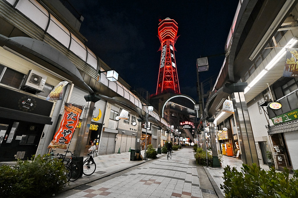 日本大阪进入紧急状态 地标通天阁点亮红色灯光