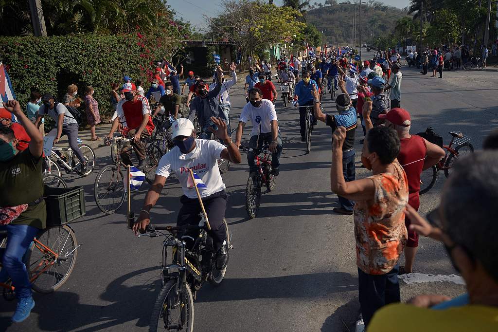 古巴多地民众游行抗议美国封锁