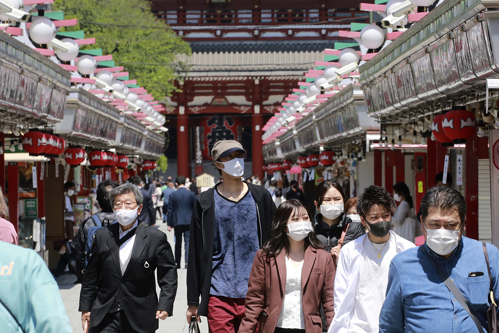 日本东京等地实施第三轮疫情紧急状态 民众戴口罩出行
