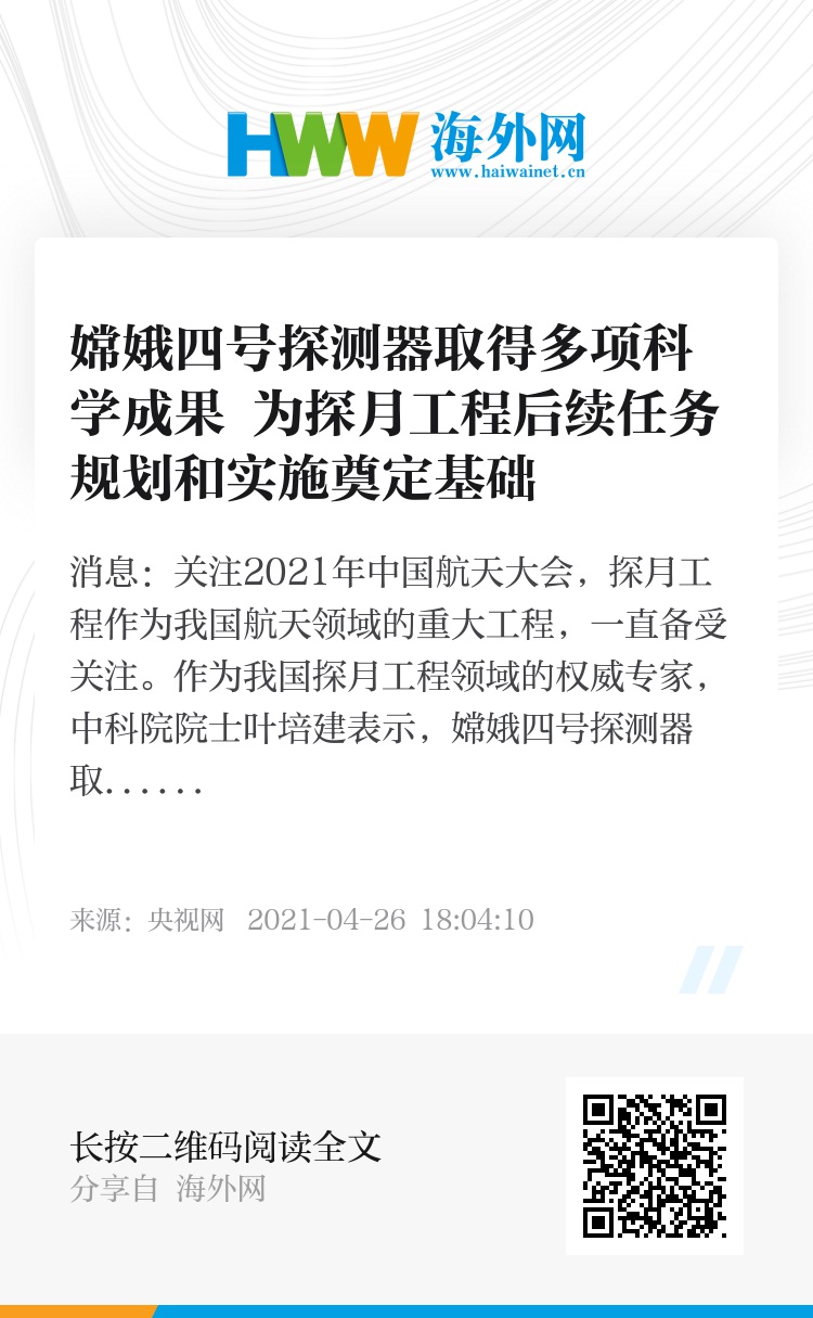 央视网消息:关注2021年中国航天大会,探月工程作为我国航天领域的重大工程,一直备受关注。作为我国探月工程领域的权威专家,中科院院士叶培建表示,嫦娥四号探测器取得多项科学成果,探月三期工程的圆满成功也为后续月球探测打下了基础。