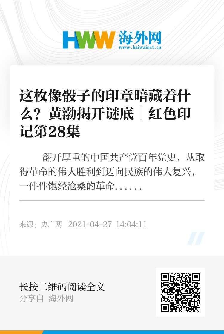 用声音刻录百年记忆,我是革命文物讲述人、演员黄渤。我要讲述的这件文物是一枚木质印章,从外观看,有点像个骰子。不过它可不是一枚普通的印章,而是人民军队早期的秘密联络工具――六面密印。对于长征时期在南方坚持游击战的红军来说,它可是荒山野岭中彼此验证的重要印信。如今收藏在中国人民革命军事博物馆里。
