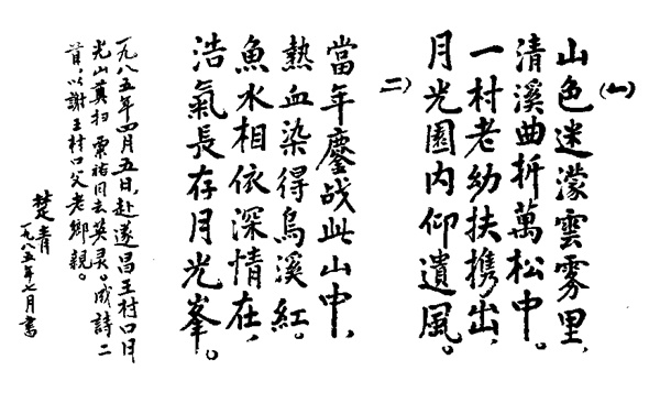 粟裕将军夫人楚青在浙西南游击根据地王村口写下的两首诗