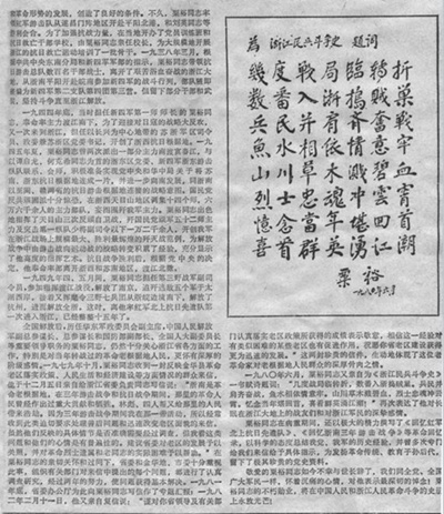 浙江日报刊登的《粟裕同志在浙江革命斗争中的丰功伟绩》