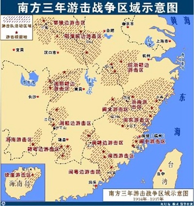 南方三年游击战争区域示意图