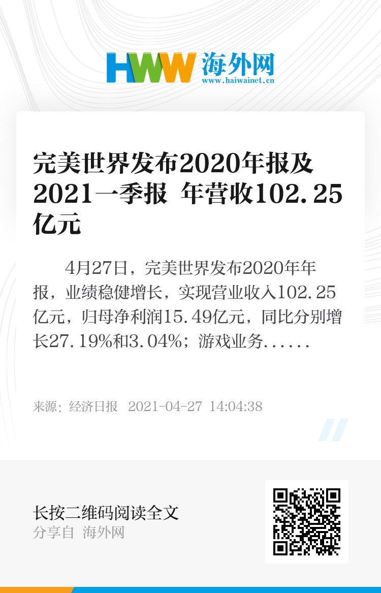 当天,完美世界还同时发布了2021Q1季报,期内实现营业收入22.31亿元,归母净利润4.64亿元。2021年4月,完美世界游戏发布全新战略,在夯实基本盘的基础上力求突破,将开拓创新打造全新潮流新品,扩宽赛道多元布局。