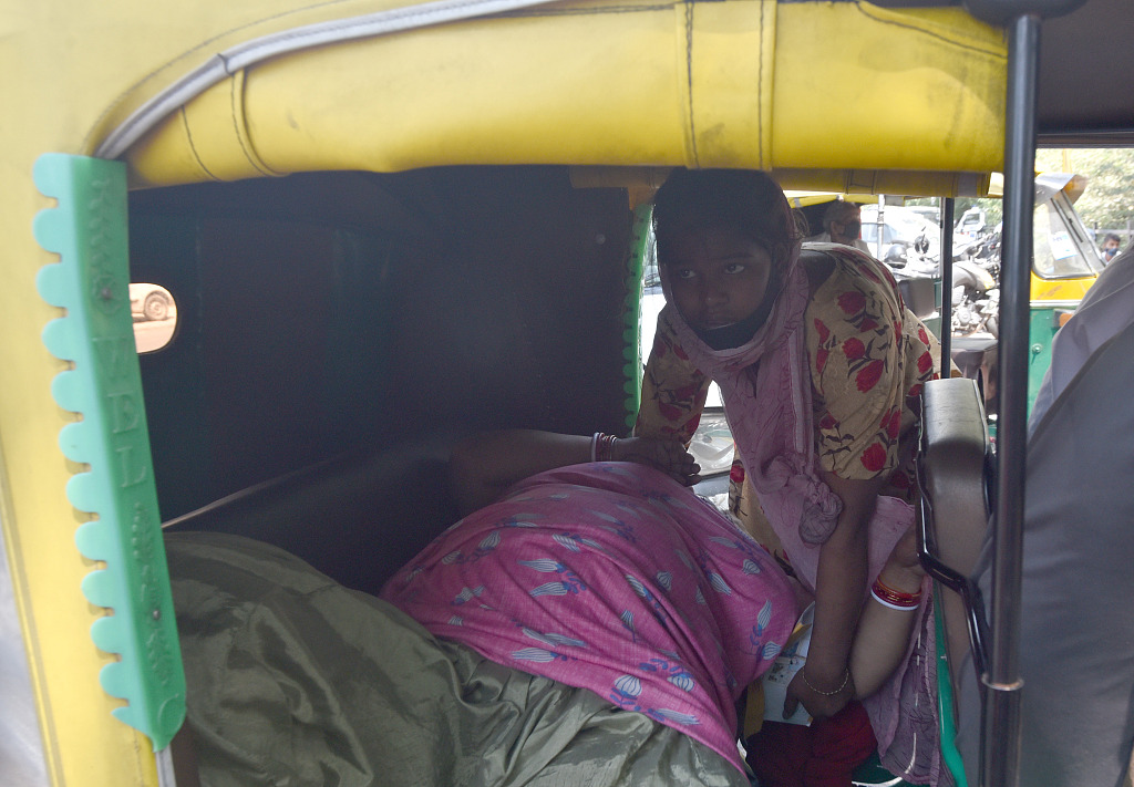 印度医院病床供应不足 新冠患者在街头等待住院