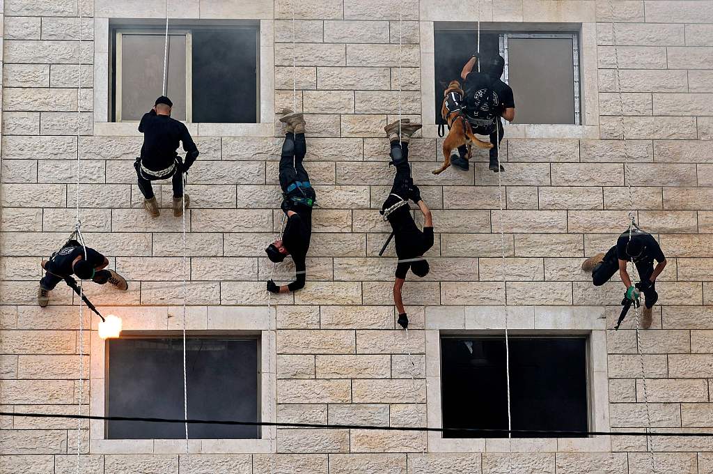 加沙地带举行警察毕业典礼 警察“飞檐走壁”秀技巧