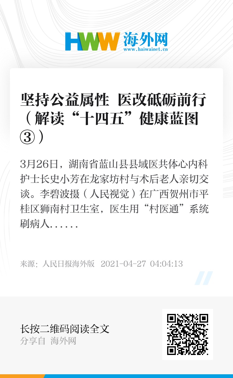 “‘十四五’期间,我们要在全国因地制宜地推广三明经验。”李玲表示,医改是典型的系统性改革,核心是改革治理体系,需要政府强有力的领导,落实政府办医责任,以人民健康为中心,破除逐利的旧体制,建立公益性新制度。