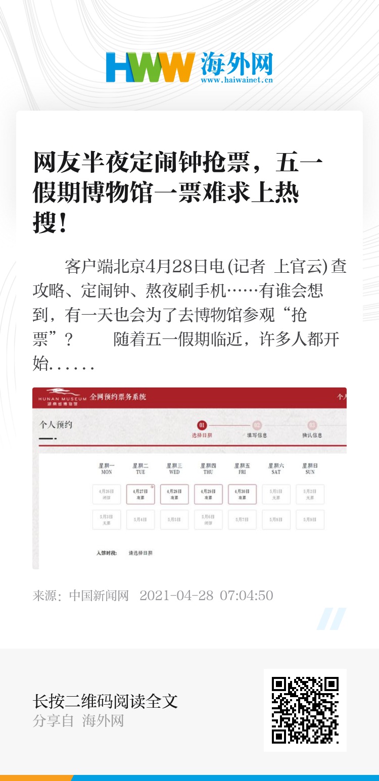 中新网客户端北京4月28日电(记者 上官云)查攻略、定闹钟、熬夜刷手机……有谁会想到,有一天也会为了去博物馆参观“抢票”?