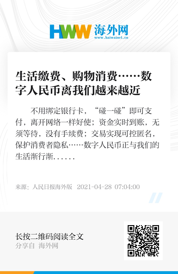 啥是数字人民币?它本质上是由国家信用担保、中国人民银行发行的法定货币,是数字化的现金,与纸钞硬币完全等价。2019年底,数字人民币相继在深圳、苏州、雄安新区、成都及未来的冬奥场景启动试点测试,到2020年10月又增加上海、海南、长沙、西安、青岛、大连6个试点测试地区,范围逐步有序扩大。