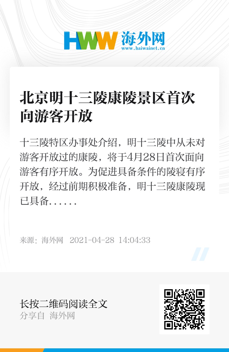 十三陵特区办事处介绍,明十三陵中从未对游客开放过的康陵,将于4月28日首次面向游客有序开放。