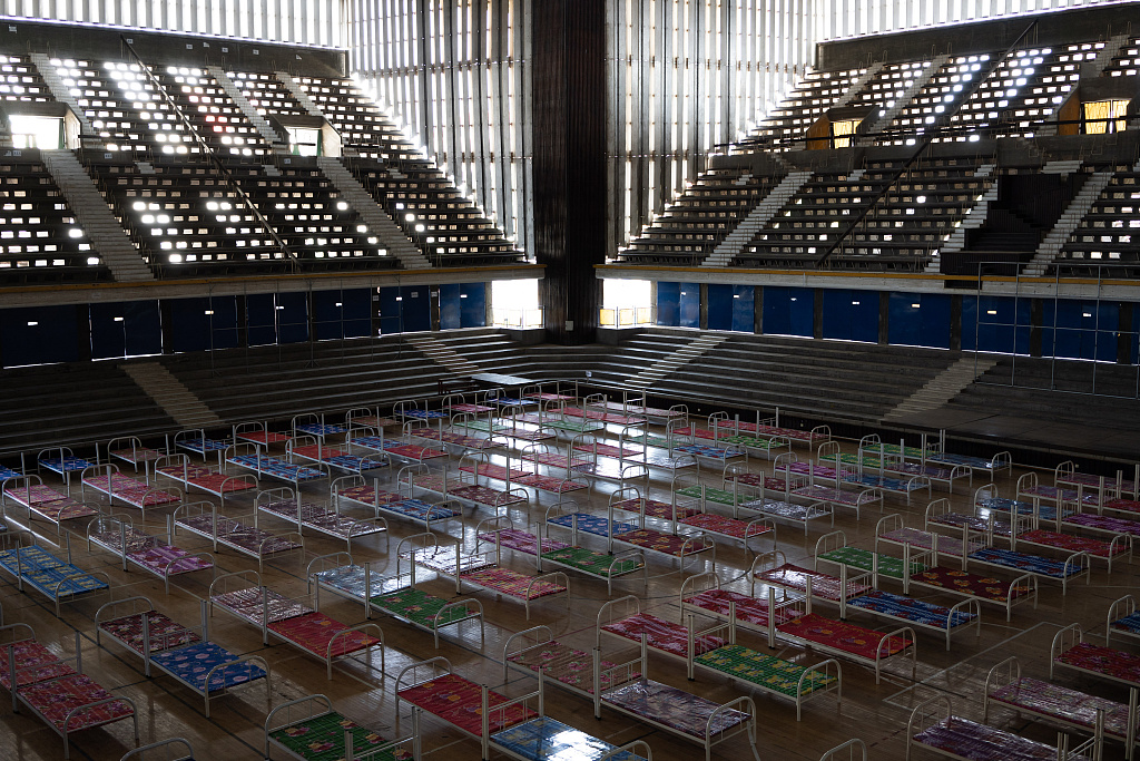 当地时间2021年4月26日,柬埔寨金边,军队士兵在奥林匹克体育场建立应对新冠疫情的临时医院。图片来源:人民视觉