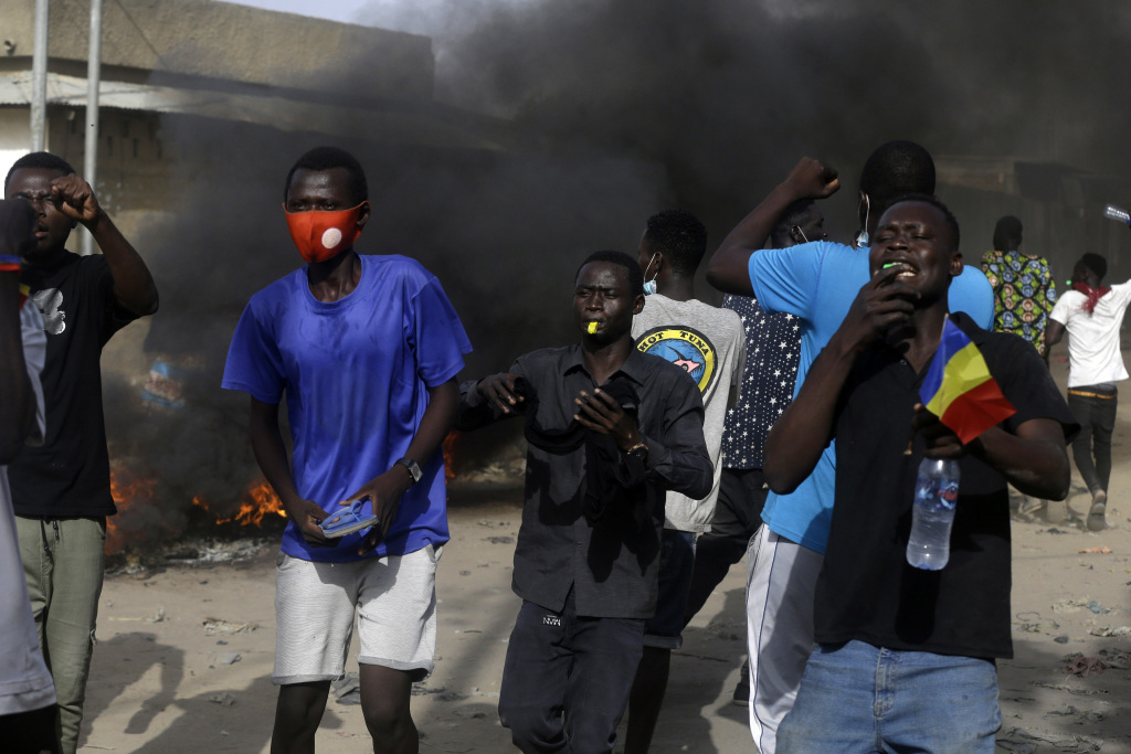 当地时间2021年4月27日,乍得恩贾梅纳,当地举行反政府游行示威,示威者同军警发生冲突。图片来源:澎湃影像