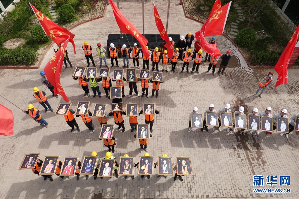 4月28日,劳动者用自己的微笑照片组成“五一”字样。当日,由北京市总工会主办的“首都劳动者微笑迎‘五一’暨创新实干勇争先劳动竞赛”,在北京建工集团地铁歇甲村车辆段项目部举行,参与北京市轨道交通建设的劳动者获赠自己的微笑照片,迎接属于自己的节日。新华社记者 金良快 摄