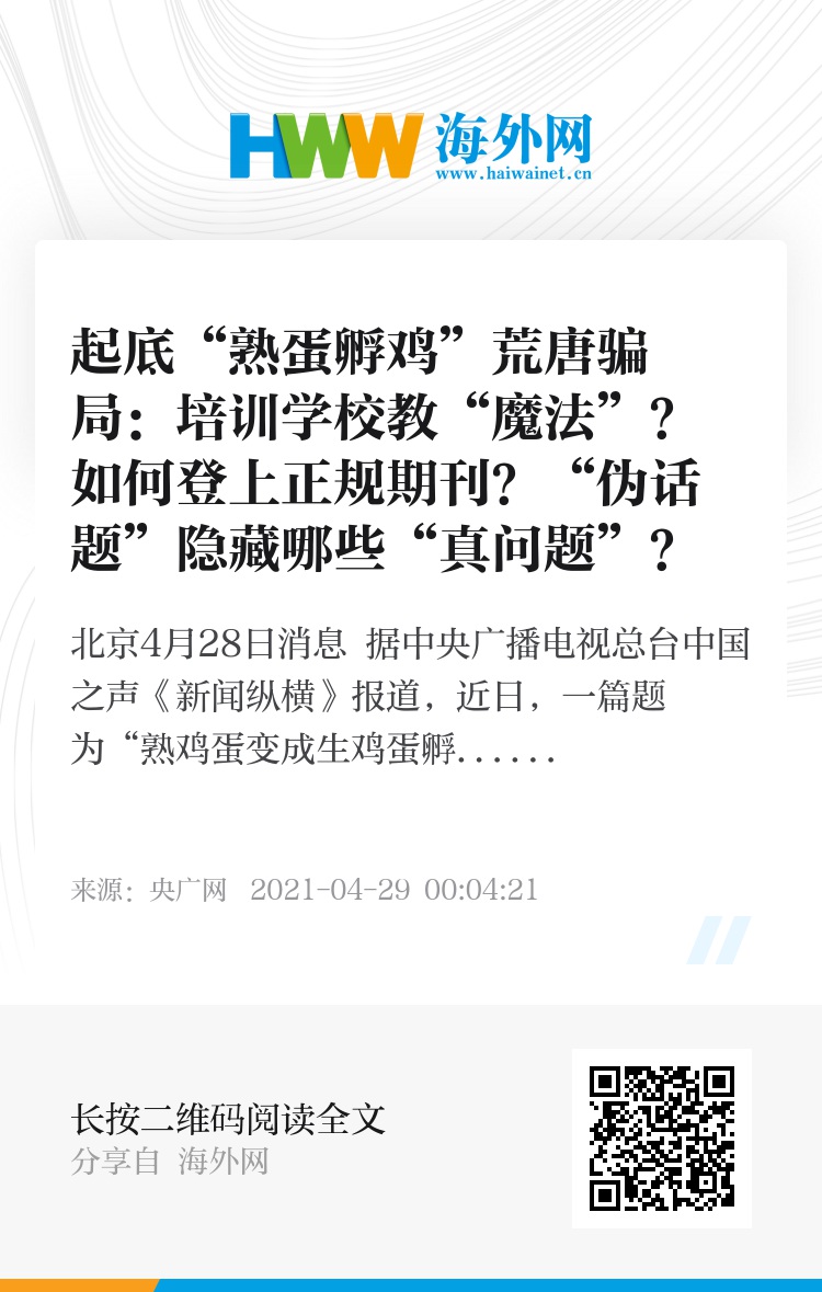 据公开报道,除了“熟鸡蛋返生孵小鸡”之外,郭萍还发表过“物体穿瓶越壁”“熟绿豆返生发芽”等相关文章。如此匪夷所思的论文,究竟是如何登上正规期刊的?郭萍担任校长的春霖职业培训学校又是一所怎样的学校?他们拿这种不攻自破的荒唐骗局做文章,目的又是什么?