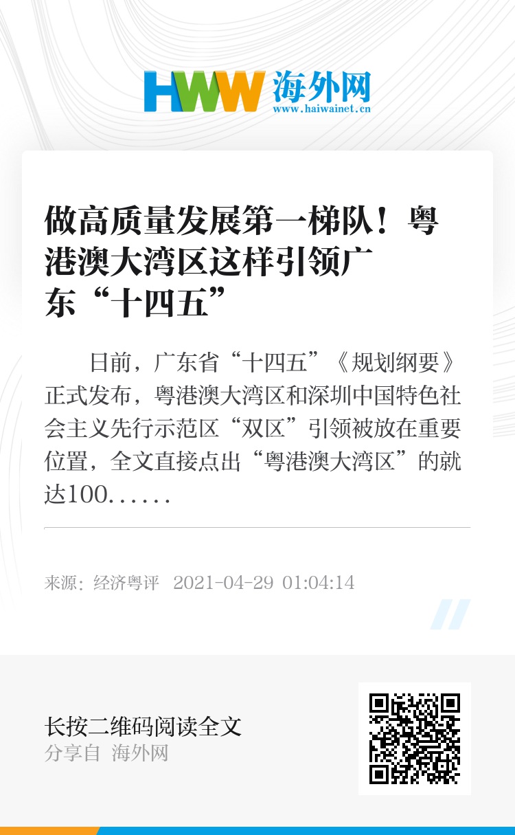 日前,广东省“十四五”《规划纲要》正式发布,粤港澳大湾区和深圳中国特色社会主义先行示范区“双区”引领被放在重要位置,全文直接点出“粤港澳大湾区”的就达100余处。