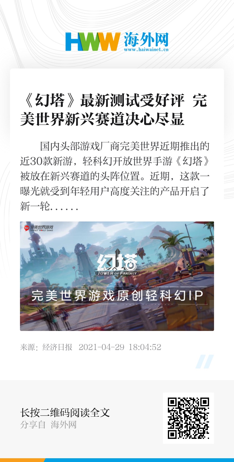 《幻塔》是完美世界布局新兴赛道的一次重要尝试。4月13日,完美世界游戏召开战略发布会,发布了近30款新产品,除了擅长的传统MMO,还有了更多细分赛道品类上的丰富。