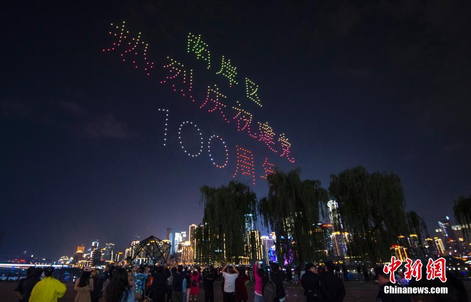 庆祝建党100周年 无人机表演点亮重庆夜空