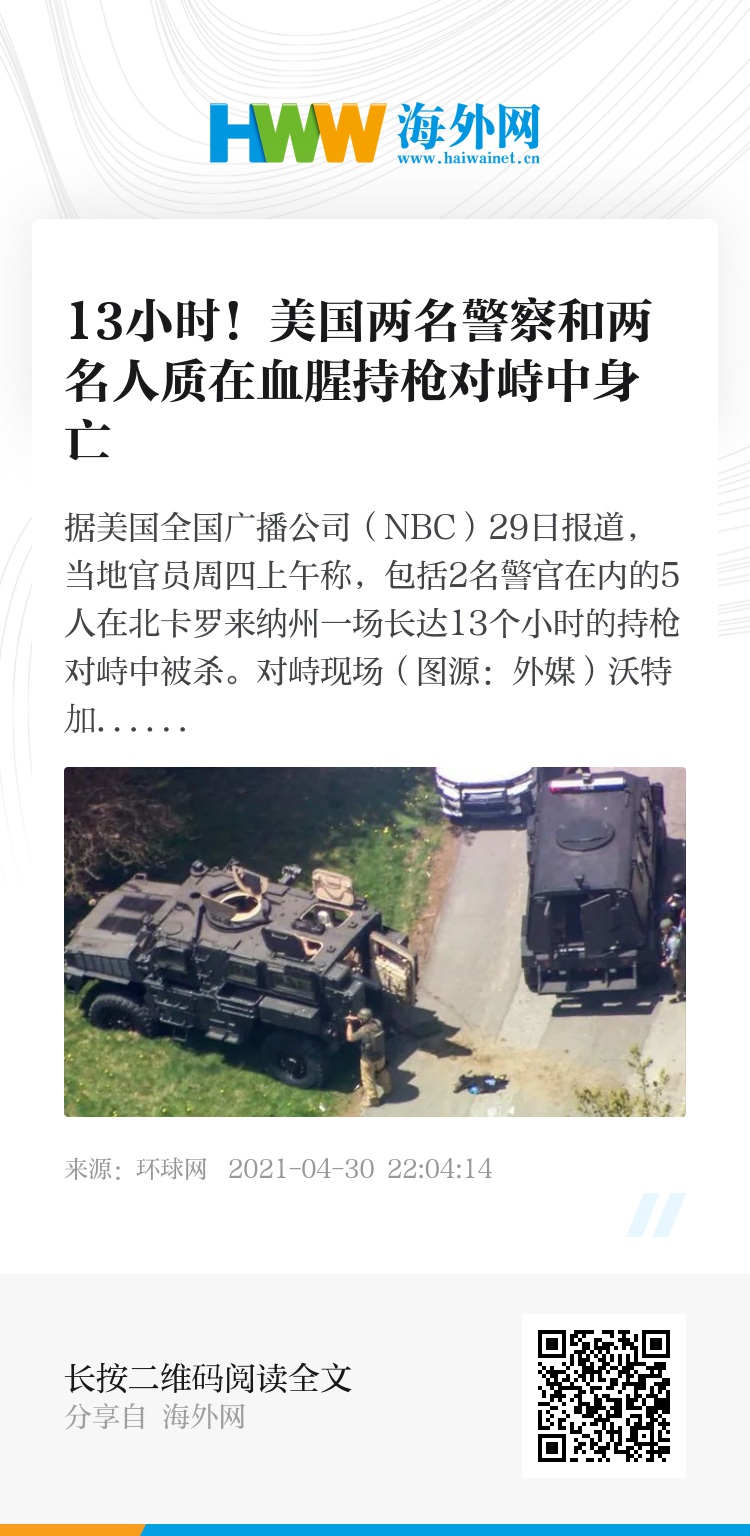 据美国全国广播公司(NBC)29日报道,当地官员周四上午称,包括2名警官在内的5人在北卡罗来纳州一场长达13个小时的持枪对峙中被杀。
