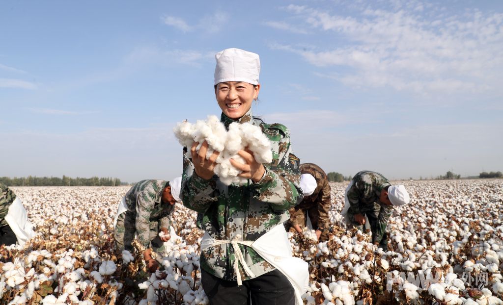 2018年9月23日,在新疆生产建设兵团农六师芳草湖农场,来自甘肃的拾棉工正在采摘棉花。(供图:澎湃影像)